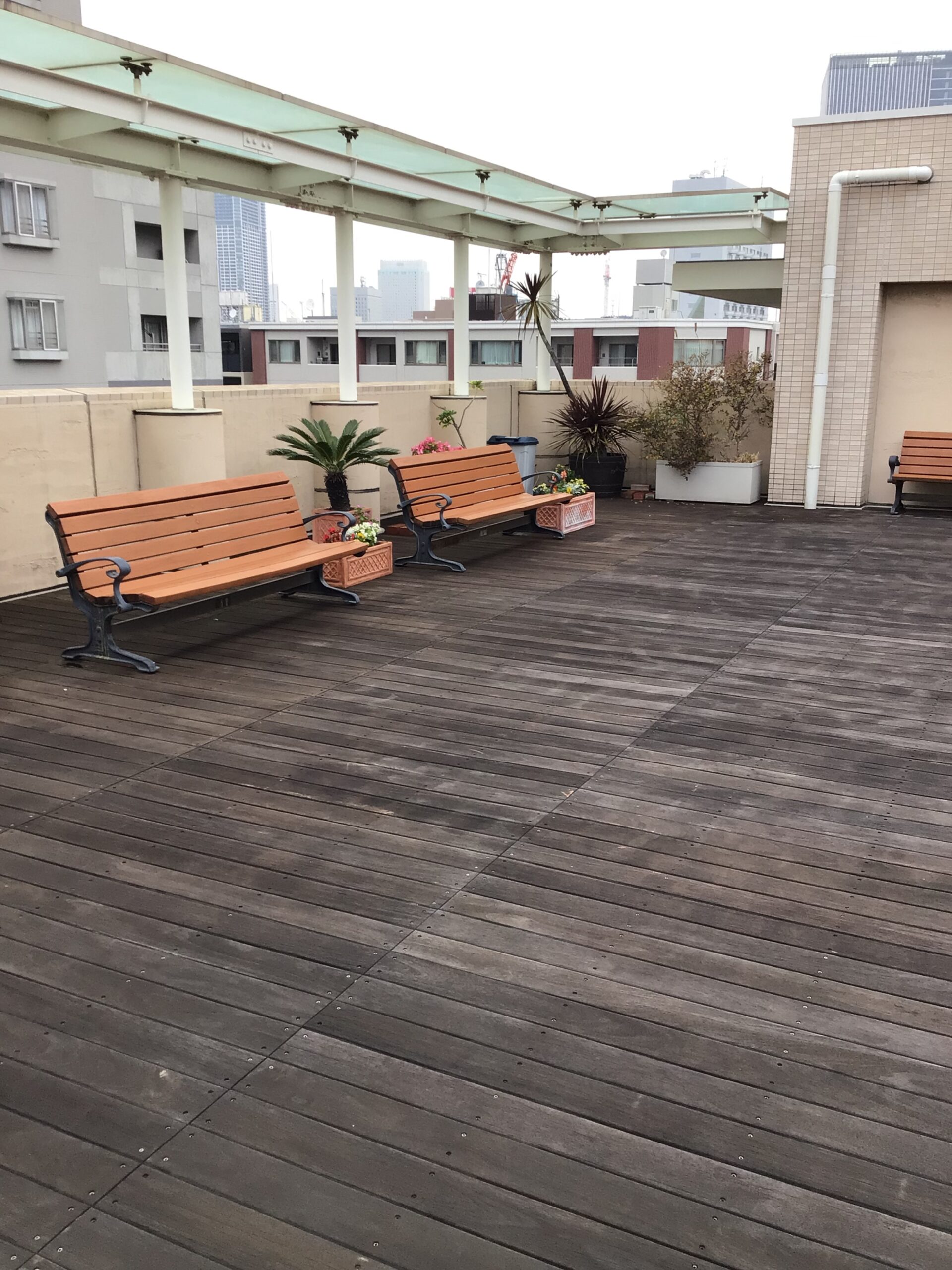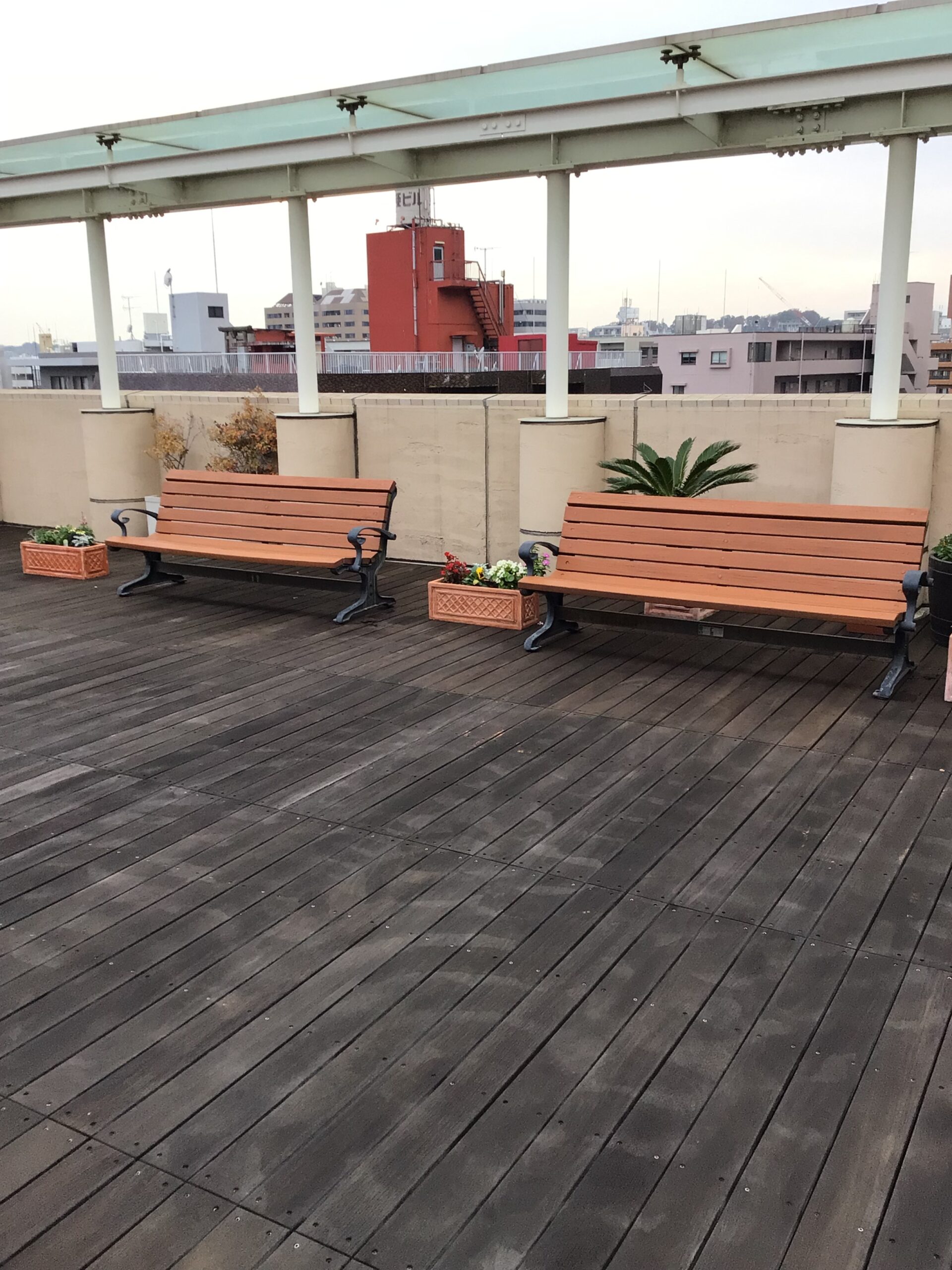 そんな憩いの場に御座いますベンチ、床板を数年ぶりに磨き、ニスを塗ってみました!!