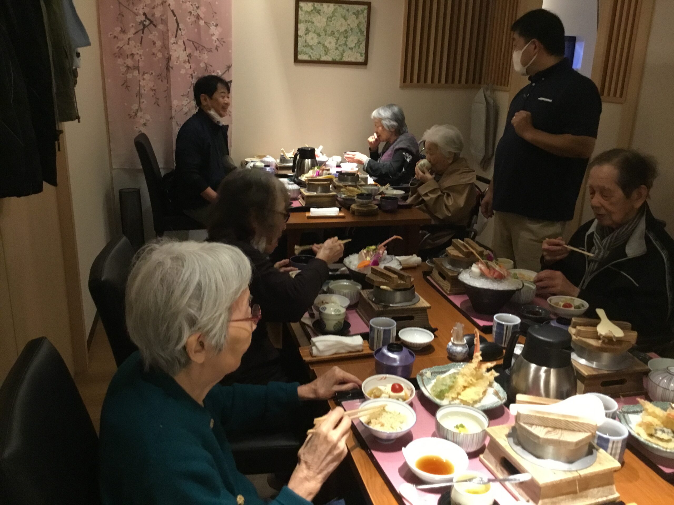 天ぷら御膳、お刺身御膳とご入居者様のお好みで選んでいただきました。