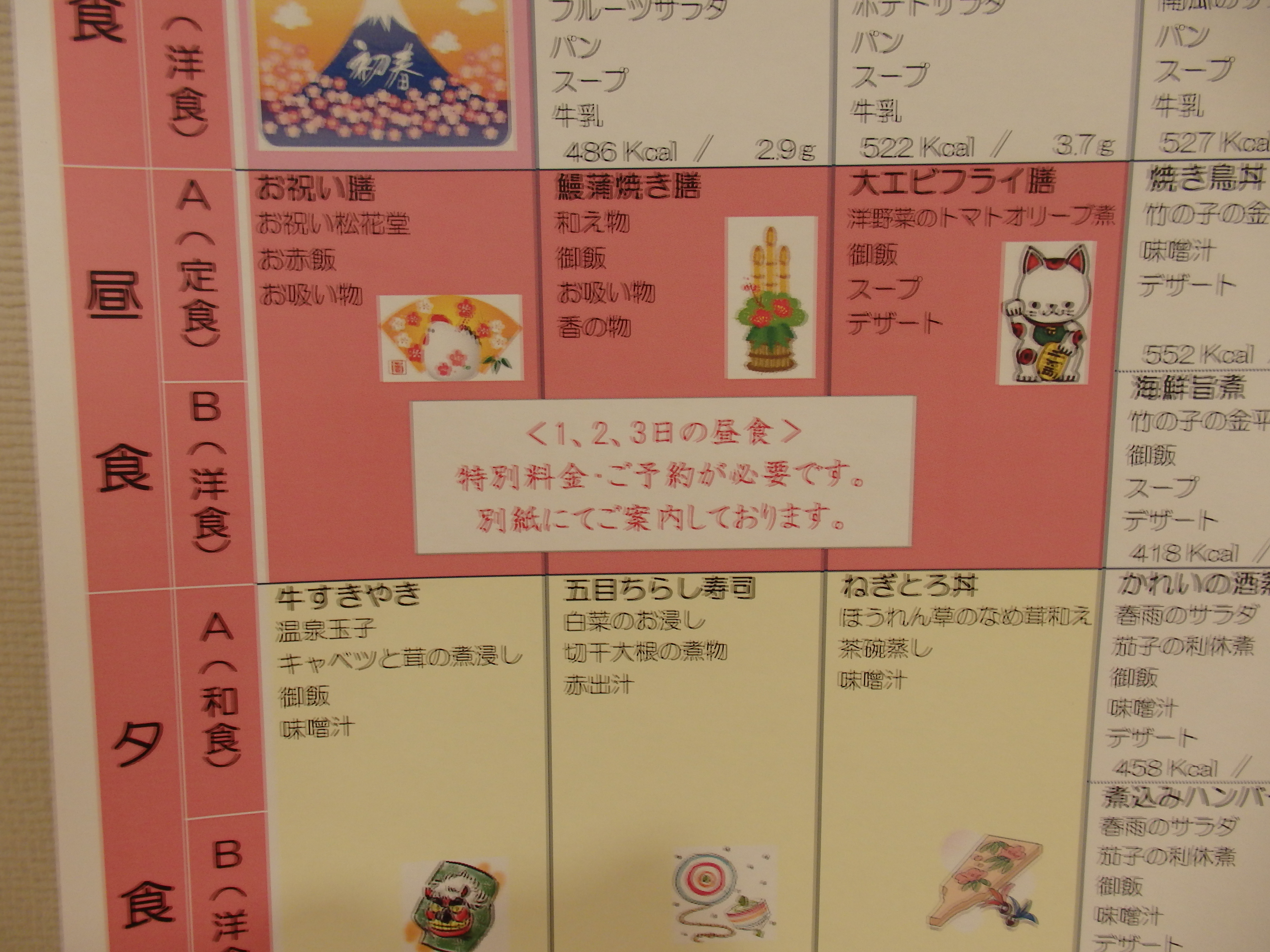 お昼のおせちは大好評でした。ちなみに2日は鰻、3日目はエビフライでした(^O^)/