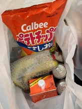 食後のデザート用にヨーグルトやフルーツ、ご飯のお供の定番のふりかけ、納豆、梅干し、大好きなお菓子、晩酌用のビール!