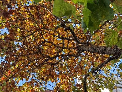 横浜でもこのような条件が重なり、街路樹が紅葉しています