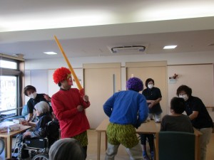 立春を迎え暦の上では春となりましたがまだまだ寒い日が続いています。都心では雪が降り風邪やインフルエンザの流行も出ています。その為、当ホームでは今月は外出レクリエーションを控えて館内でレクリエーションで楽しんで頂いています。2/3日には節分があり豆まきを行いました。赤鬼・青鬼に豆をぶつけ邪気を祓いました。